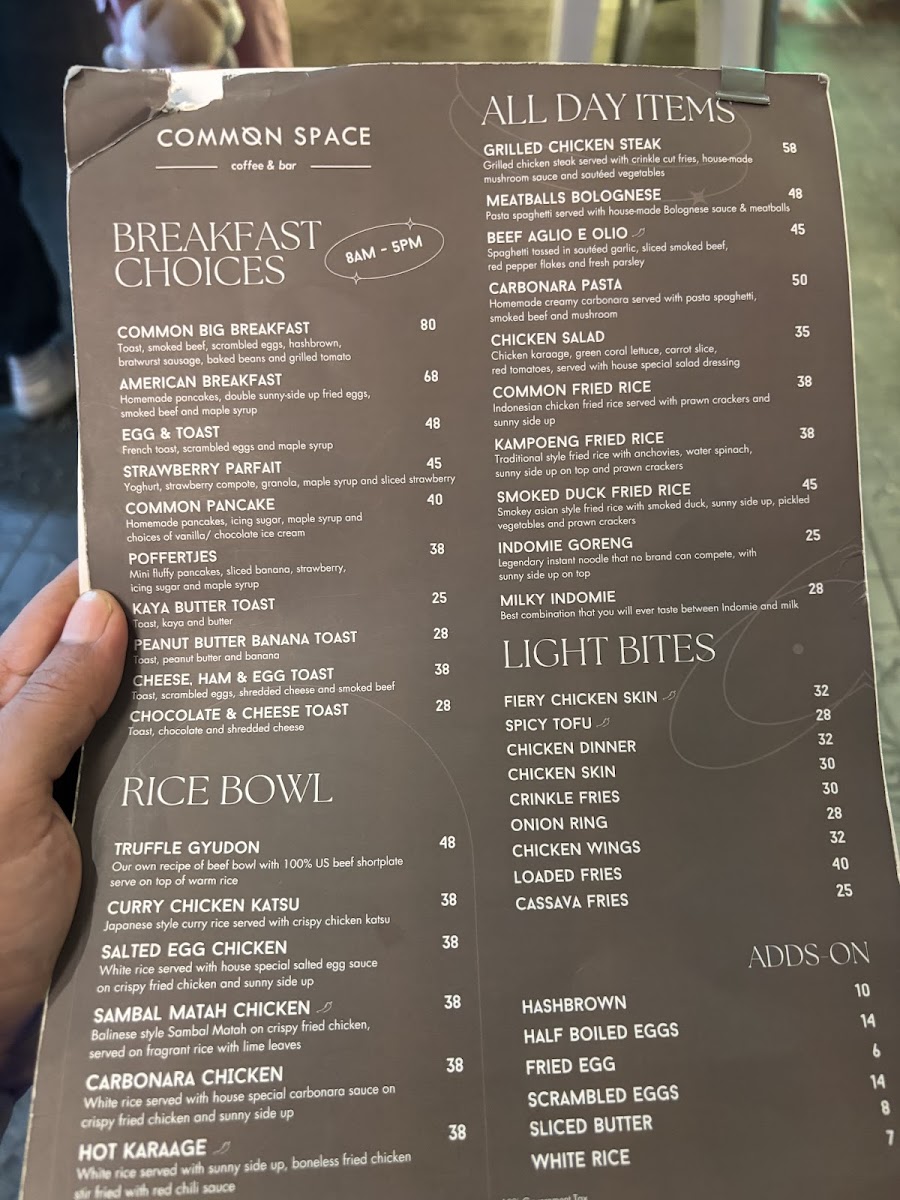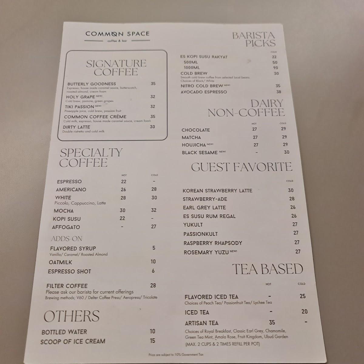 Welcome to Common Space Coffee & Bar, an inviting café nestled in Lubuk Baja, Batam City. This stylish spot balances aesthetics and comfort, boasting ample natural light, perfect for coffee enthusiasts and Instagrammers alike. The menu is a delightful mix of expertly brewed coffee and satisfying dishes, with standout items like the "Butterly Goodness" coffee, striking a harmonious blend reminiscent of Montblanc. Patrons appreciate the affordability, with iced Americanos priced under IDR 60,000, ensuring great value.